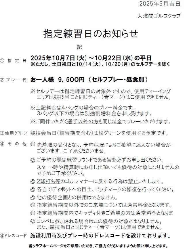 いつも大浅間ゴルフクラブをご愛顧くださいまして誠にありがとうございます。