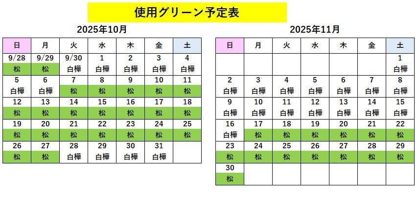 ※使用グリーンは予定ですので、変更になる場合がございます